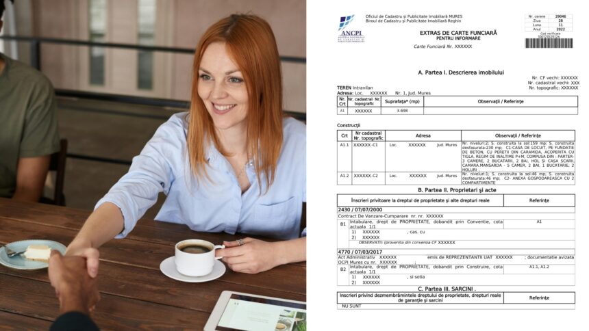 Diana a decis să vândă o casă cu teren în județul Cluj. Înainte de a lista proprietatea, a comandat online extrasul de carte funciară, copia intabulării, copia contractului prin care dobândise proprietatea și copia PAD-ului. La verificarea extrasului CF, a observat că în Partea a III-a mai era notată o ipotecă veche, deja achitată dar neradiată. Dacă ar fi descoperit asta abia la notar, tranzacția ar fi fost amânată. În schimb, Diana a rezolvat radierea la bancă înainte de a programa vizionările, iar când a ajuns la notar cu cumpărătorul, dosarul era complet și tranzacția s-a finalizat fără nicio întârziere.